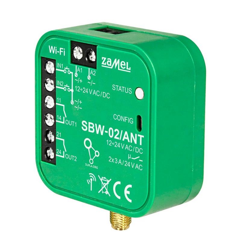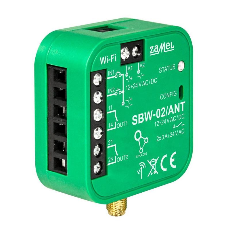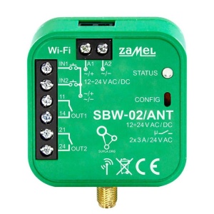 SBW-02/ANT to sterownik bramowy umożliwiający integrację z dowolnym napędem bramowym oraz furtką lub dwoma bramami. Dzięki aplikacji mobilnej Supla kontrola urządzenia jest w pełni zdalna. Sterownik przystosowany jest do montażu bezpośrednio w napędzie i obsługuje uniwersalne zasilanie 12-24V AC/DC, co pozwala na szerokie zastosowanie. Po podłączeniu sygnałów z wyłączników krańcowych, urządzenie informuje o otwarciu i zamknięciu bramy lub furtki. Sterownik oferuje bezprzewodowe sterowanie poprzez Wi-Fi, a użytkownik ma możliwość śledzenia stanu bramy oraz kontrolowania urządzenia z dowolnego miejsca na świecie. Urządzenie jest wyposażone w złącze RP-SMA, do którego można podłączyć zewnętrzną antenę Wi-Fi (dołączoną do zestawu).