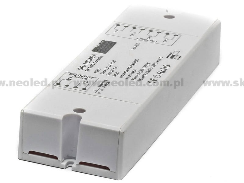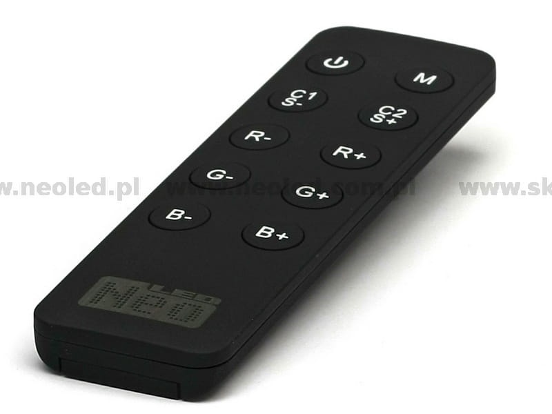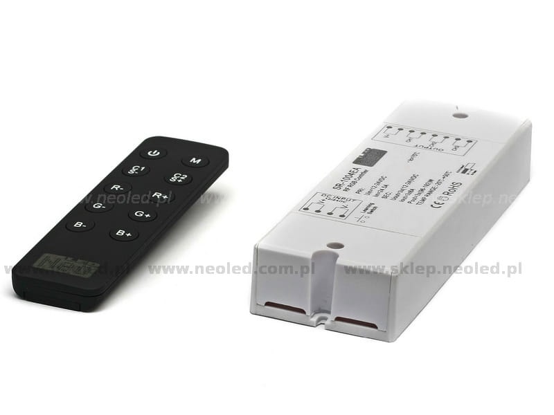 Sterownik ten umożliwia sterowanie produktów RGB za pomocą zgrabnego pilota z możliwością ustawienie dowolnego koloru. Urządzenie składa się z nadajnika w postaci pilota oraz odbirnika(ów) i umożliwia sterowanie synchroniczne wielu odbiorników jednocześnie. Sterownik w swojej pamięci ma zapisane 10 programów dynamicznego przejścia kolorów oraz 10 programów kolorów statycznych. Ponadto istnieje możliwość ustawienia dowolnego koloru za pomocą jednego klawisza oraz możliwość dostarajania barwy poprzez dodawanie lub odejmowanie podstawowych kolorów RGB. Duża obciążalność prądowa pozwala na podłączenie do odbiorników większych systemów oświetlenia niż w spotykanych dotychczas sterownikach. Pilot umożliwia zaprogramowanie większej ilości odbiorników, dzięki czemu bez problemu zainstalujemy systemy LED o długościach 100mb i więcej, bez utraty synchronizacji sterowania jak ma to miejsce przy użyciu wzmacniaczy.