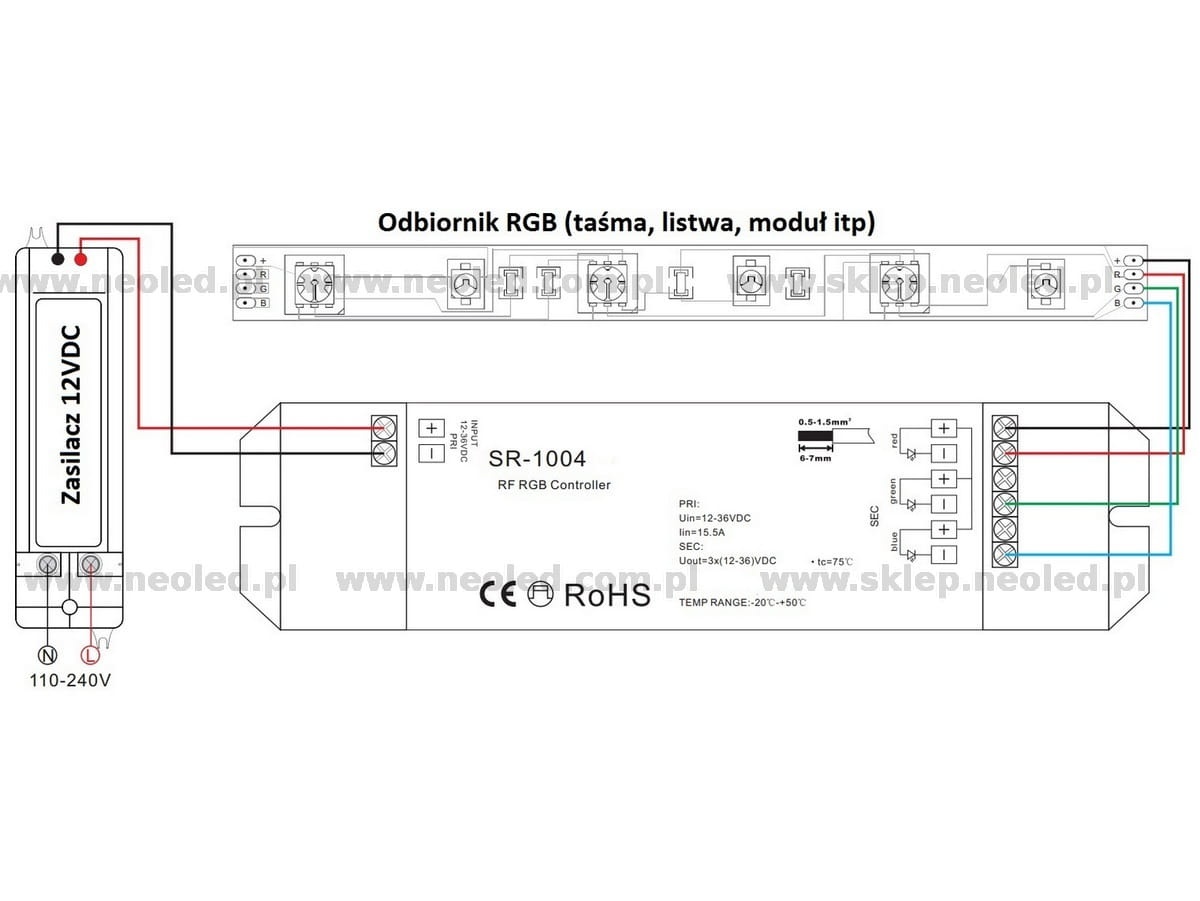 - Ilość wyjść: 1 x RGB
