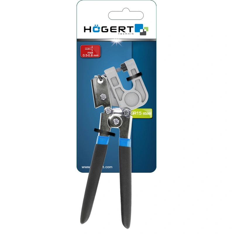 Szczypce do szybkiego łączenia elementów z blach o grubości 0,5–0,8 mm. Mechanizm dźwigni umożliwia pracę przy minimalnym wysiłku, zapewniając szybkie i trwałe połączenia.