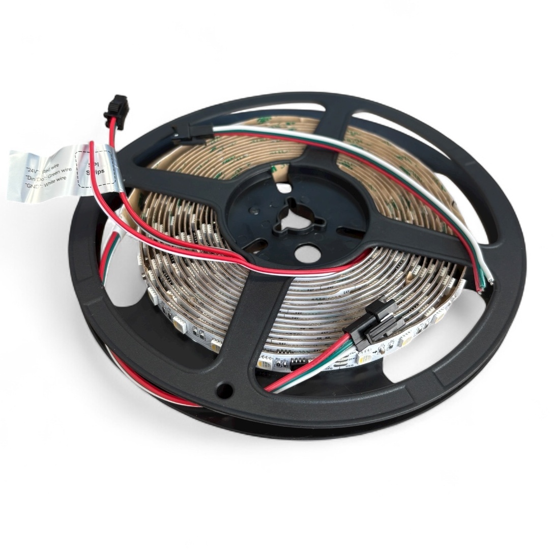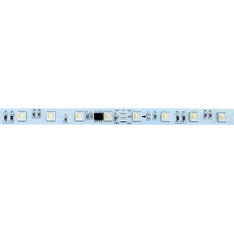 Taśma LED RGB+WN cyfrowa ze sterowaniem SPI na diodach SMD5050 (60led/m) zapewnia pełną kontrolę nad kolorem i animacjami świetlnymi. Pracuje przy napięciu 24 V i pobiera 19 W/m – pozwala uzyskać intensywne efekty kolorystyczne przy stabilnym napięciu.