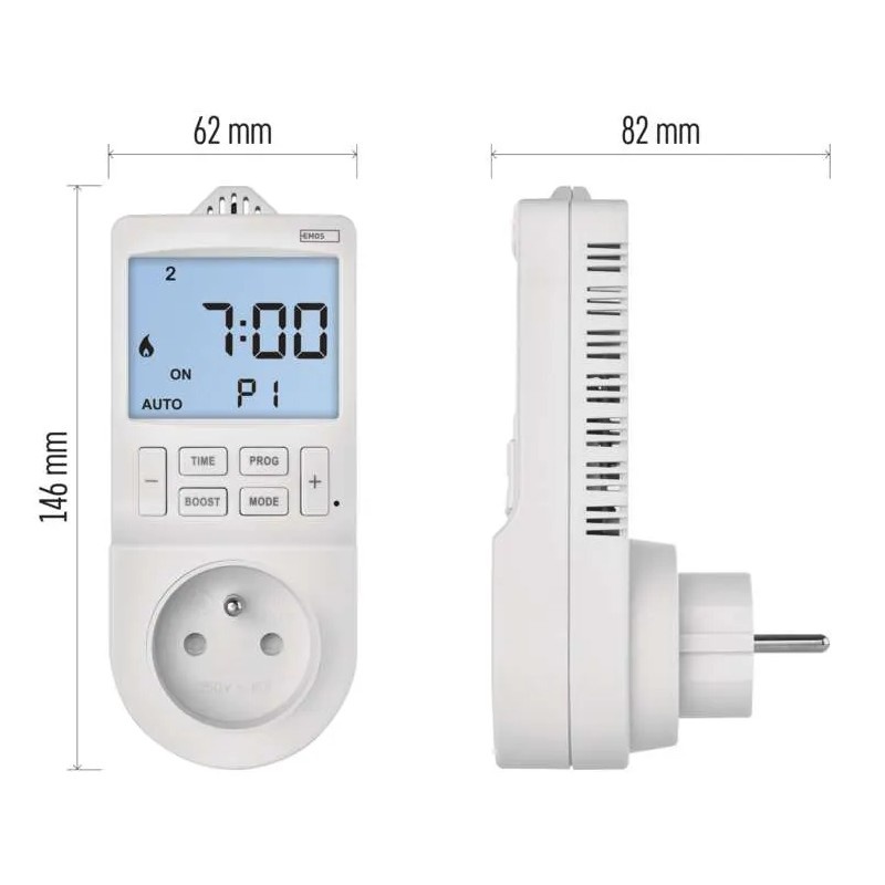 - Rodzaj: cyfrowy termostat gniazdkowy