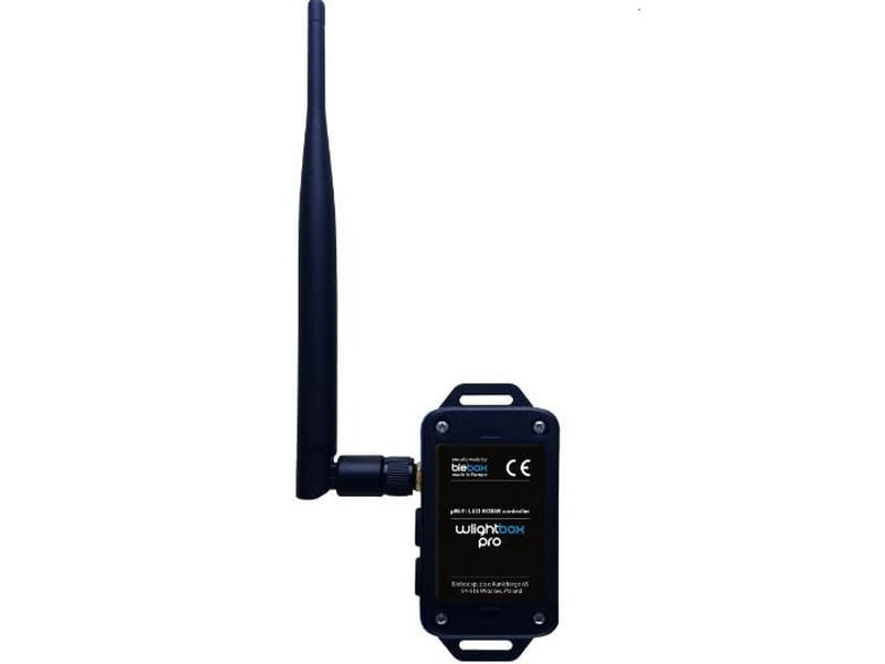 wLighBoxPro to małe urządzenie umożliwiające sterowanie oświetleniem LED RGBW w domu jak i na zewnątrz. Bezprzewodowy kontroler obsługiwany jest za pomocą smartfonów, telefonów, laptopów, wystarczy tylko mieć dostęp do sieci WiFi. Ze względu na wysoką klasę ochrony IP54 urządzenie może być zamontowane nie tylko w domu ale również wokół jego. Posiada zaawansowany edytor efektów świetlnych wraz z harmonogramem oraz paletą ulubionych kolorów. Sterownik posiada możliwość integracji z innymi systemami. Można połączyć go z asystentem głosowym Amazon Alexa czy Google Home oraz z systemem inteligentnego domu Home Assistant. Wersja PRO umożliwia również sterowanie oświetleniem LED z poziomu fizycznego przełącznika. Zasilany jest napięciem od 12 V do 24 V DC.