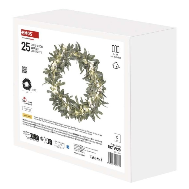 Wianek świetlny LED jemioła 25led ciepła biel 35cm 3xAA timer IP20 DCTW28 Emos