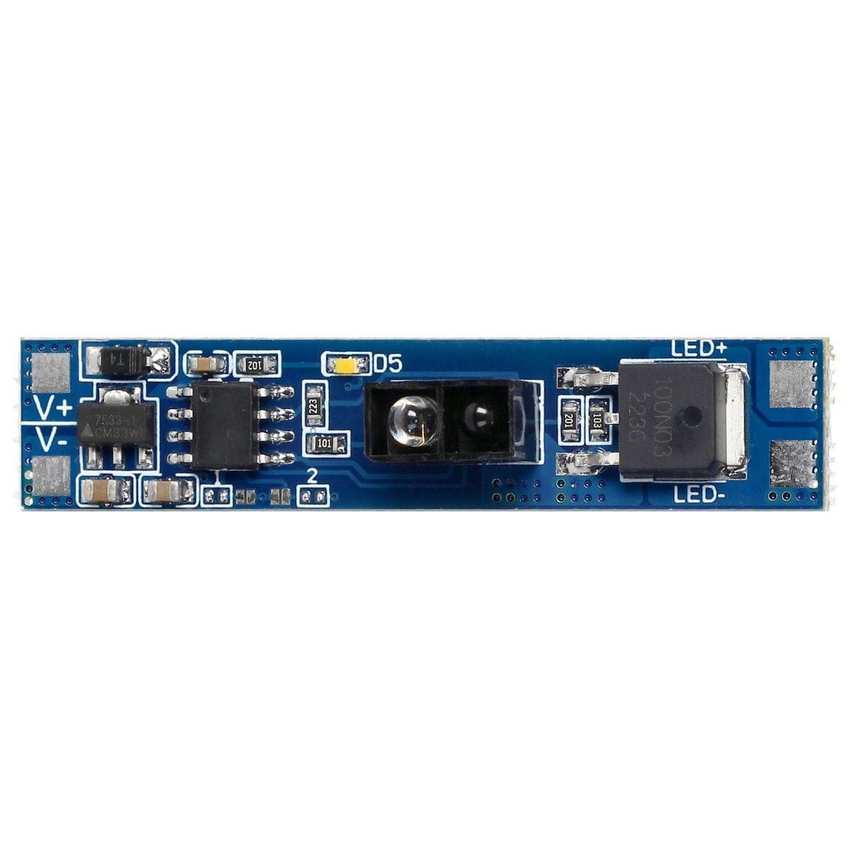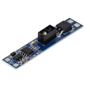 Włącznik ze ściemniaczem, bezdotykowy do taśm LED, o natężeniu pracy max. 8A i stopniu ochrony IP20. Jest to drobne urządzenie o wymiarach 10 x 48 mm umożliwiające uruchomienie i wyłączenie taśmy LED w profilu bezdotykowo (wystarczy poruszyć ręką w zasięgu do 6 cm od włącznika). Wymiary pozwalają na montaż w profilach o szerokości wewnętrznej powyżej 10 mm.