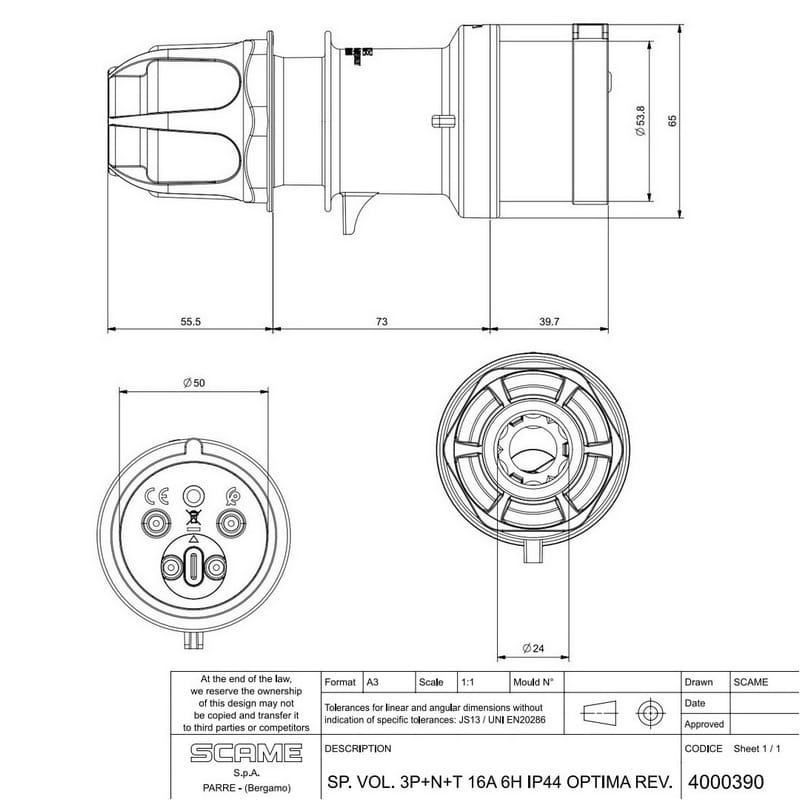 Wtyczka siłowa ze zmianą faz OPTIMA przenośna 16A IP44 5P SCAME