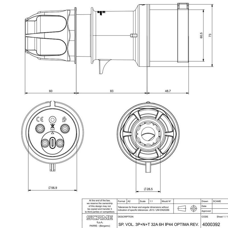 Wtyczka siłowa ze zmianą faz OPTIMA przenośna 32A IP44 5P SCAME