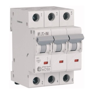 Wyłącznik z zabezpieczeniem nadmiarowo-prądowym 3-biegunowy. Służy do ochrony przewodów przed przeciążeniami i zwarciami w instalacjach i urządzeniach. Przeznaczony do montażu na szynie DIN35. Wyłączniki o charakterystyce typu C zaprojektowane są do automatycznego wyzwalania przy prądzie przekraczającym od 5 do 10 razy wartość prądu wyjściowego. Istnieje możliwość połączenia wyłączników za pomocą szyn grzebieniowych, a także ich plombowania.
