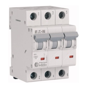 Wyłącznik z zabezpieczeniem nadmiarowo-prądowym 3-biegunowy. Służy do ochrony przewodów przed przeciążeniami i zwarciami w instalacjach i urządzeniach. Przeznaczony do montażu na szynie DIN35. Wyłączniki o charakterystyce typu B zaprojektowane są do automatycznego wyzwalania przy prądzie przekraczającym od 3 do 5 razy wartość prądu wyjściowego. Istnieje możliwość połączenia wyłączników za pomocą szyn grzebieniowych.