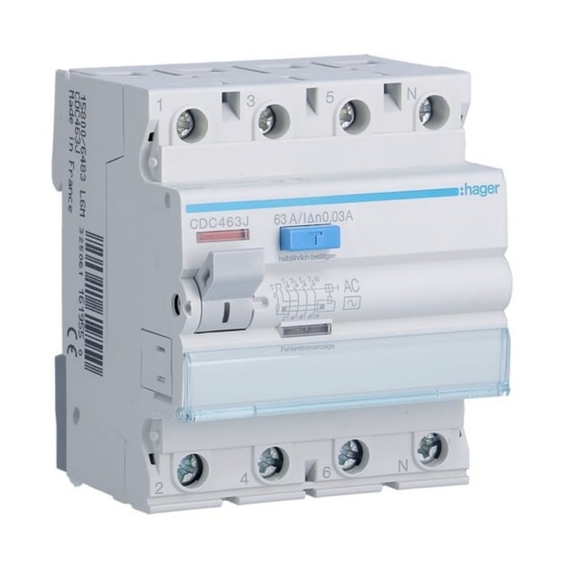 Wyłącznik różnicowoprądowy AC 3P+N 63A 30mA HAGER