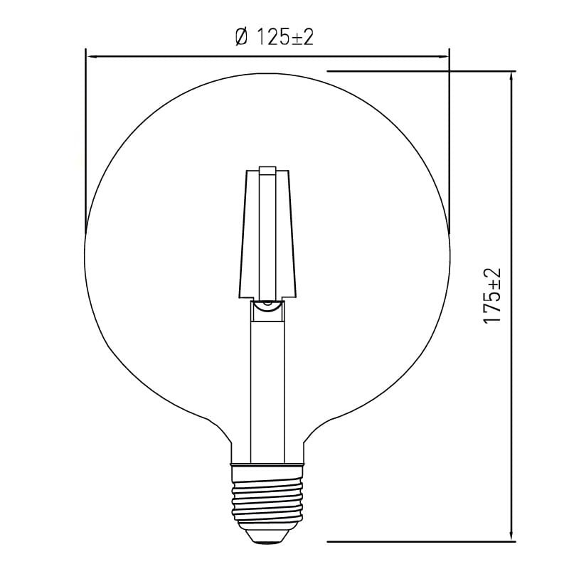 Żarówka G125 LED z trzonkiem E27 firmy GTV posiada moc 4W oraz emituje światło o barwie ciepłej białej. Dzięki widocznemu filamentowi oraz wyróżniającym kształcie, produkt jest doskonałym uzupełnieniem designerskich lamp o widocznych źródłach światła. Świetnie sprawdzi się zarówno w salonie, jadalni jak również w klimatyczny sposób oświetli werandy, tarasy, altany ogrodowe oraz ogródki restauracyjne.