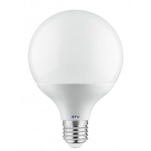 Źródło światła E27 LED od firmy GTV to duża okrągła szklana bańka G120 o szerokim kącie świecenia. Żarówka ma neutralną barwę światła oraz stosunkowo duże jego natężenie, dzięki temu świetnie zaprezentuje się w salonie lub dużym pokoju wypoczynkowym w otwartych lampach i kinkietach.