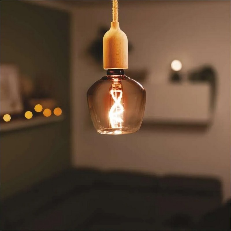 - Złote szkło podkreśla dekoracyjny charakter żarówki i dodaje wnętrzom stylu vintage.