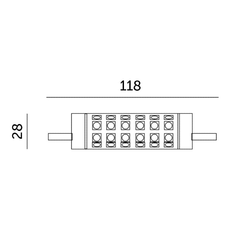 Dzięki kompaktowym wymiarom (118 mm długości, 28 mm średnicy) żarówka pasuje do większości opraw z trzonkiem R7s. Nie jest kompatybilna ze ściemniaczami.