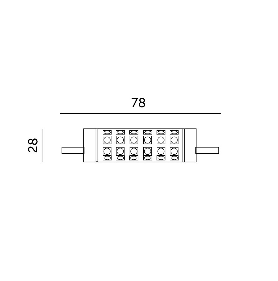 Dzięki kompaktowym wymiarom (78 mm długości, 28 mm średnicy) żarówka pasuje do większości opraw z trzonkiem R7s. Nie jest kompatybilna ze ściemniaczami.