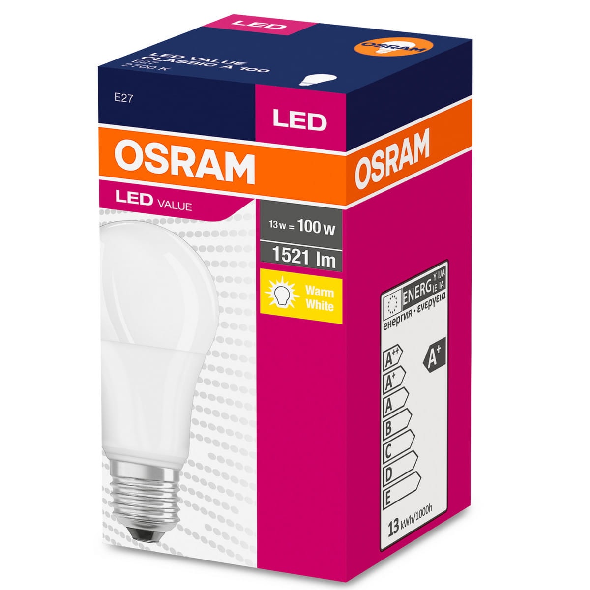 Żarówki LED firmy Osram zapewniają idealnie rozproszone światło oraz wyjątkową trwałość i natychmiastowe znaczne zmniejszenie zużycia energii. Żarówka E27 o mocy 14W emituje ciepłą barwę światła o strumieniu świetlnym 1521lm. Dzięki użyciu wysokiej jakości materiałów produkt stanowi doskonałym zamiennikiem dla tradycyjnych matowych żarówek o mocy 100W.