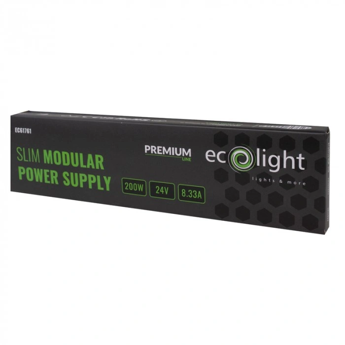 Zasilacz modułowy slim PREMIUM LINE 200W 24V przeznaczony jest do zasilania systemów LED wymagających stabilnego napięcia 24V. Sprawdza się tam, gdzie kluczowe są niewielkie wymiary i wygodny montaż. Smukła konstrukcja pozwala na instalację w wąskich przestrzeniach i zabudowach.