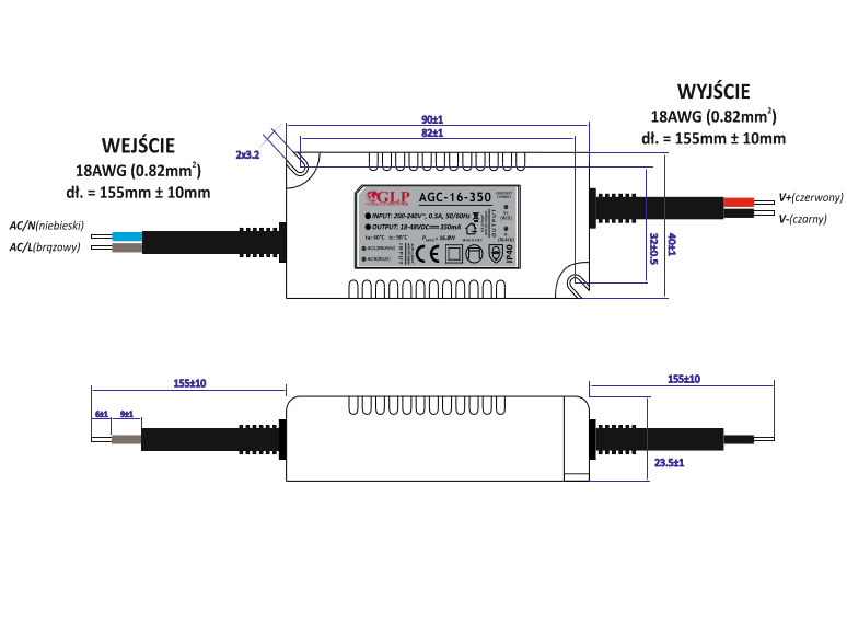 - Prąd AC (typ.): 0.18A / 230VAC