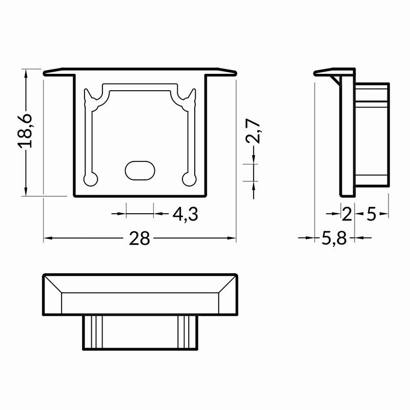 Zaślepka została precyzyjnie dopasowana do wymiarów profilu, co zapewnia łatwy montaż i trwałe osadzenie. Neutralny, szary kolor doskonale komponuje się z anodowaną powierzchnią profilu, zachowując spójność wizualną całej oprawy.