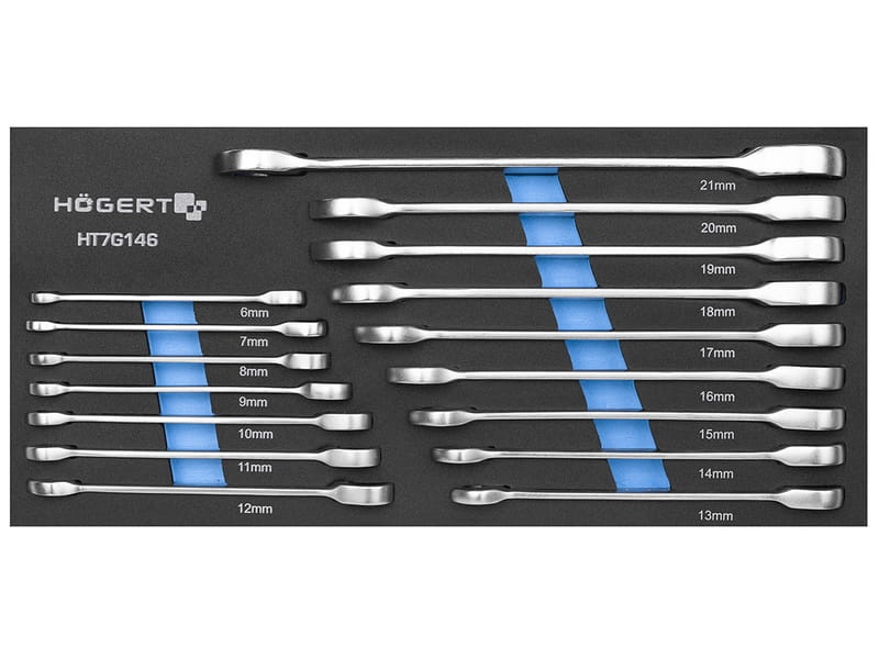 Zestaw kluczy płasko-oczkowych z grzechotką 16 szt wkład EVA HT7G146 Högert