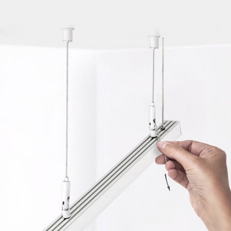 - linka zaczepiona w korku sufitowym za pomocą zakucia i regulowana przy oprawie za pomocą blokady