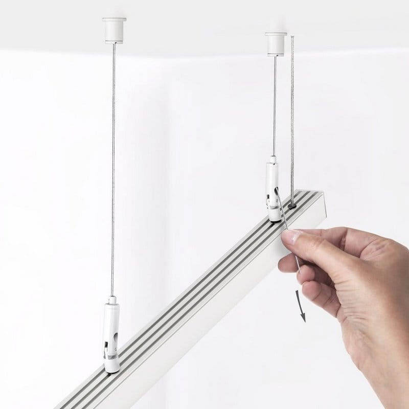 - linka zaczepiona w korku sufitowym za pomocą zakucia i regulowana przy oprawie za pomocą tulei zaciskowej