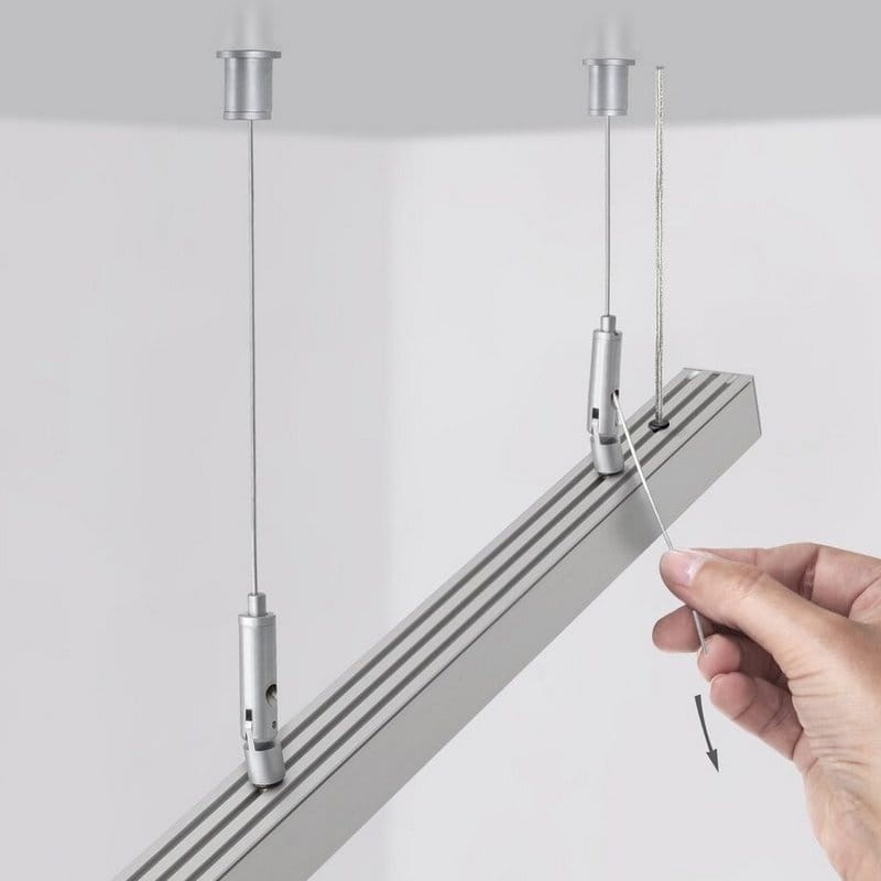 - linka zaczepiona w korku sufitowym za pomocą zakucia i regulowana przy oprawie za pomocą tulei zaciskowej