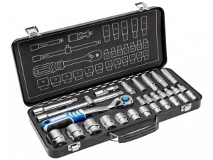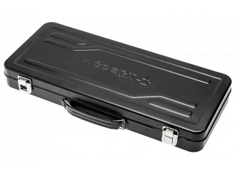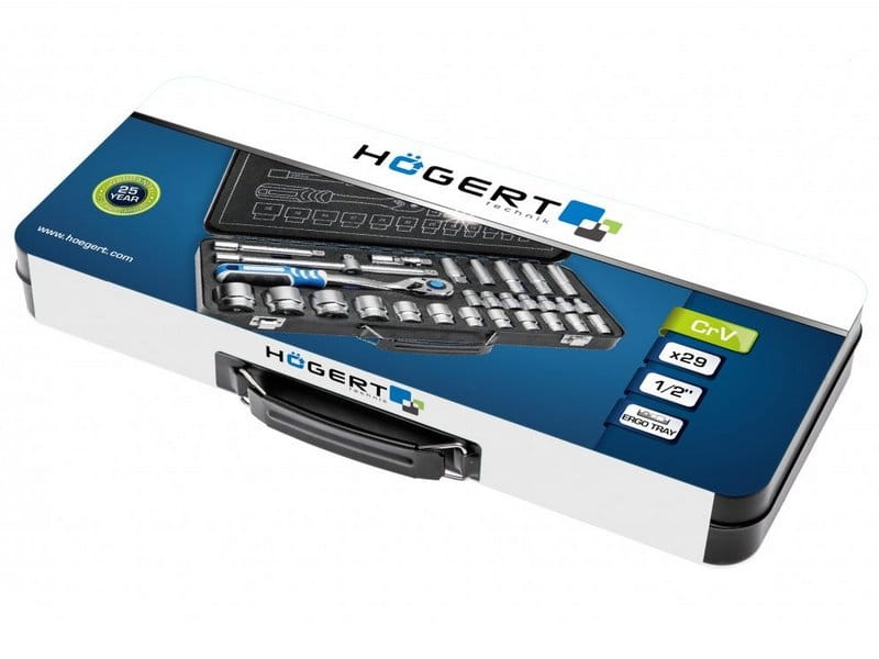 Zestaw nasadek z grzechotką 1/2” HT1R480 Högert wykonany został w większości ze stali stopowej chromowo-wanadowej o wysokiej odporności na korozję, ścieranie i charakteryzującą się dużą wytrzymałością mechaniczną. Mechanizm zapadkowy dołączonej grzechotki wykonany został ze stali chromowo-molibdenowej, która przeznaczona jest do pracy na dużych obciążeniach. Narzędzia zapakowane w walizkę z metalowymi zamkami i zawiasami, wnętrze wykonane z elastycznego tworzywa, które ułatwia dostęp do narzędzi i gwarantuje niezmienność pozycji poszczególnych elementów podczas transportu.