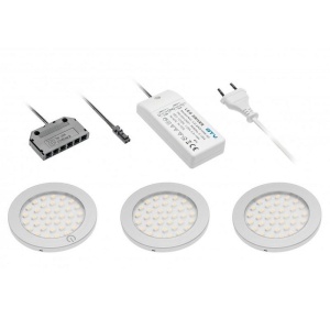 Zestaw 3 opraw LED CASTELLO 2,8W 180lm 3000K + włącznik, dystrybutor i zasilacz 15W 12VDC GTV