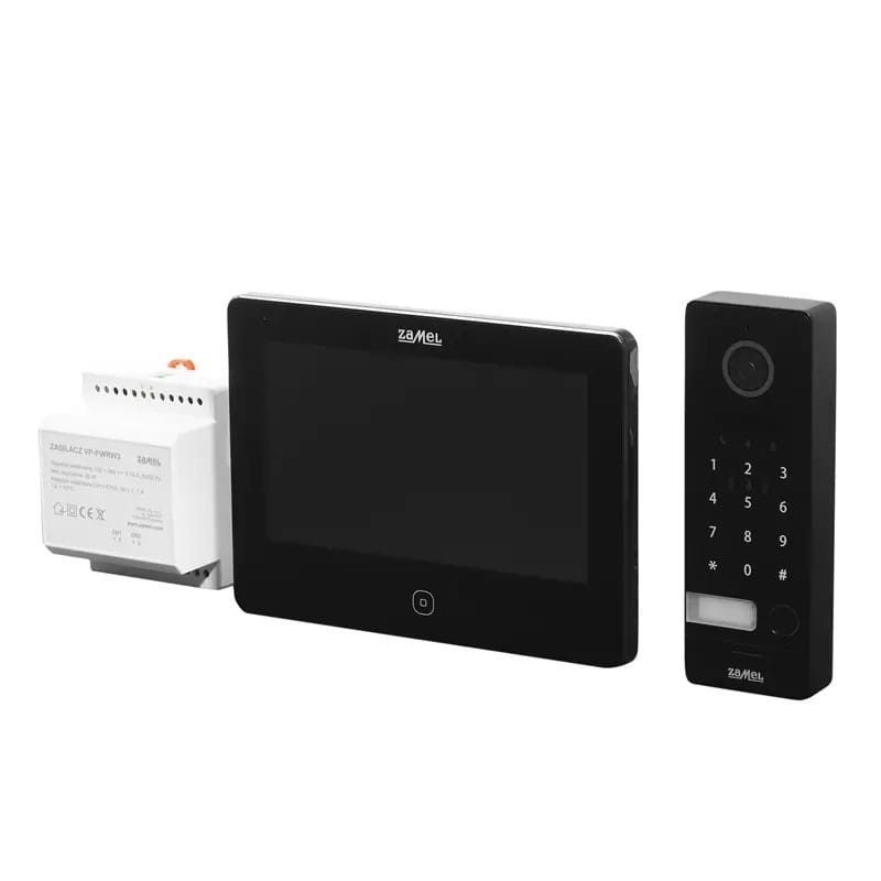 Zestaw wideodomofonowy dwużyłowy IPS HD WiFi dotykowy ekran czytnik RFiD szyfrator czarny Zamel VP-209ICSPB-B