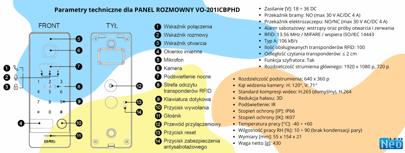 Wideodomofon VP-209ICSPB-B oferuje zaawansowane technologie, takie jak SIP, HD, IPS. Charakteryzuje się klasą szczelności IP66 i odpornością na uderzenia IK07, zapewniając wysoką jakość komunikacji wizualnej i dźwiękowej w każdych warunkach. Dzięki protokołowi SIP umożliwia rozmowy audio i wideo przez Internet, a rozdzielczość HD oraz matryca IPS gwarantują wyraźny obraz pod dowolnym kątem. Kodowanie video H265 optymalizuje przepustowość sieci, a technologia RFID i szyfrator dostępowy zwiększają bezpieczeństwo dostępu. System może obsługiwać do 8 paneli zewnętrznych i 10 monitorów, co czyni go wszechstronnym rozwiązaniem dla różnych budynków: mieszkalnych, biurowych czy publicznych.