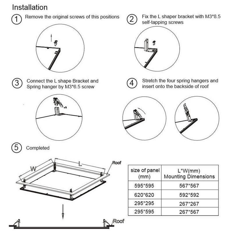Zestaw klispów i akcesorii do montażu podtynkowego paneli led VIERKANT 60x60