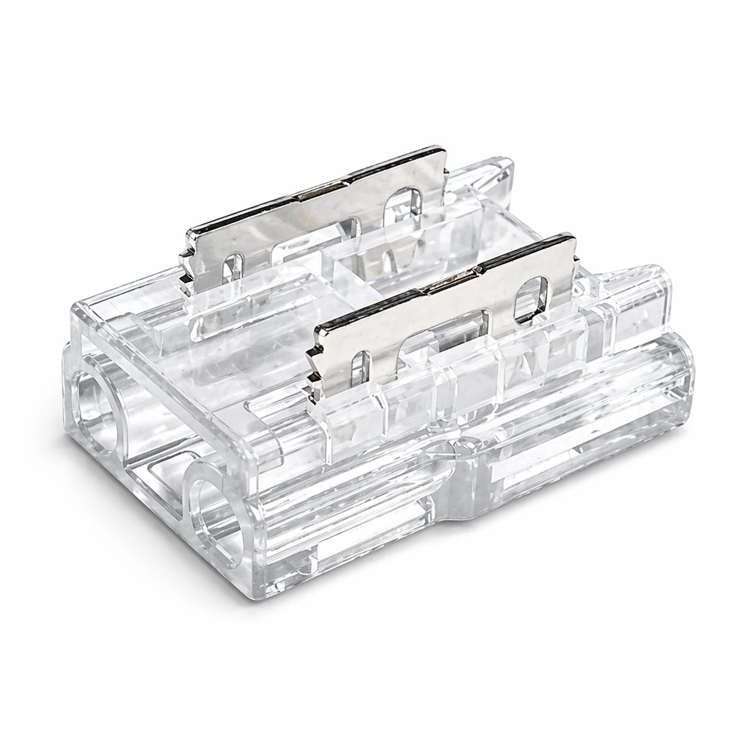 Mini złączka zaciskowa do taśm LED COB o szerokości 8 mm umożliwia szybkie i wygodne połączenie przewodu z taśmą LED bez konieczności lutowania. To praktyczne rozwiązanie znacząco upraszcza proces montażu, szczególnie w instalacjach wymagających precyzji i estetyki wykonania.