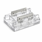 Złączka została zaprojektowana do połączeń typu taśma–taśma, co pozwala na szybkie przedłużenie instalacji LED bez użycia narzędzi lutowniczych. Mechanizm zaciskowy zapewnia trwałe połączenie przewodzące, a jednocześnie umożliwia łatwy montaż nawet osobom bez doświadczenia instalacyjnego.