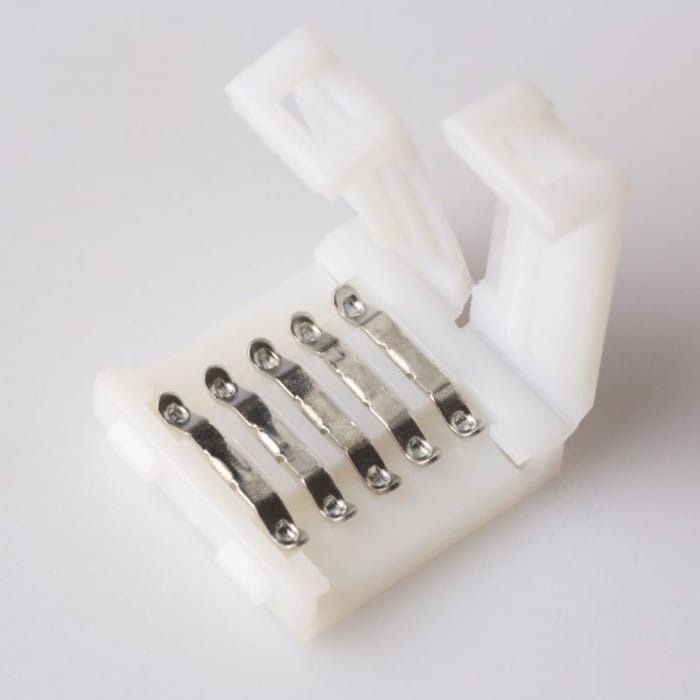 Wysokiej jakości łącznik to taśm LED RGBW 12mm (PLCC6/5050). Dzięki specjalnej konstrukcji łącznik uniemożliwia wysunięcie się taśmy LED, przyspiesza oraz ułatwia montaż systemu LED RGBW. Zamykana konstrukcja eliminuje wady tanich łączników (wsuwana taśma LED)