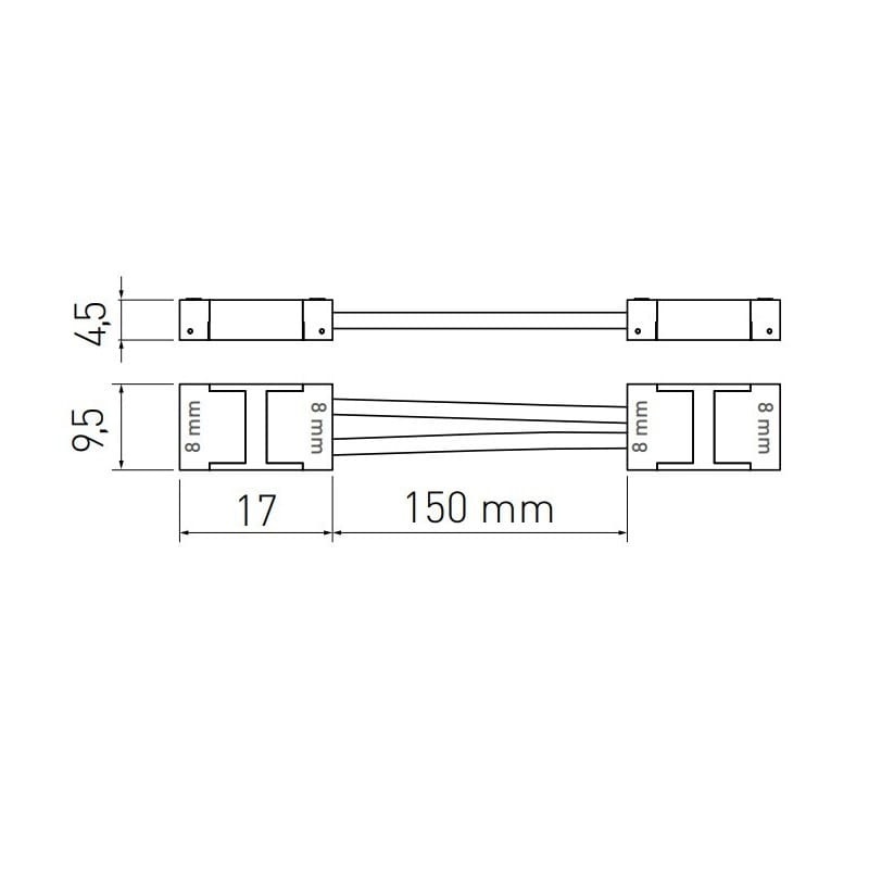Złączka dwustronna do taśm LED 8mm z przewodem 15mm